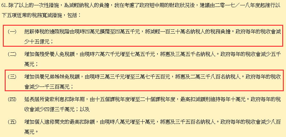 2017年稅務寬減措施
