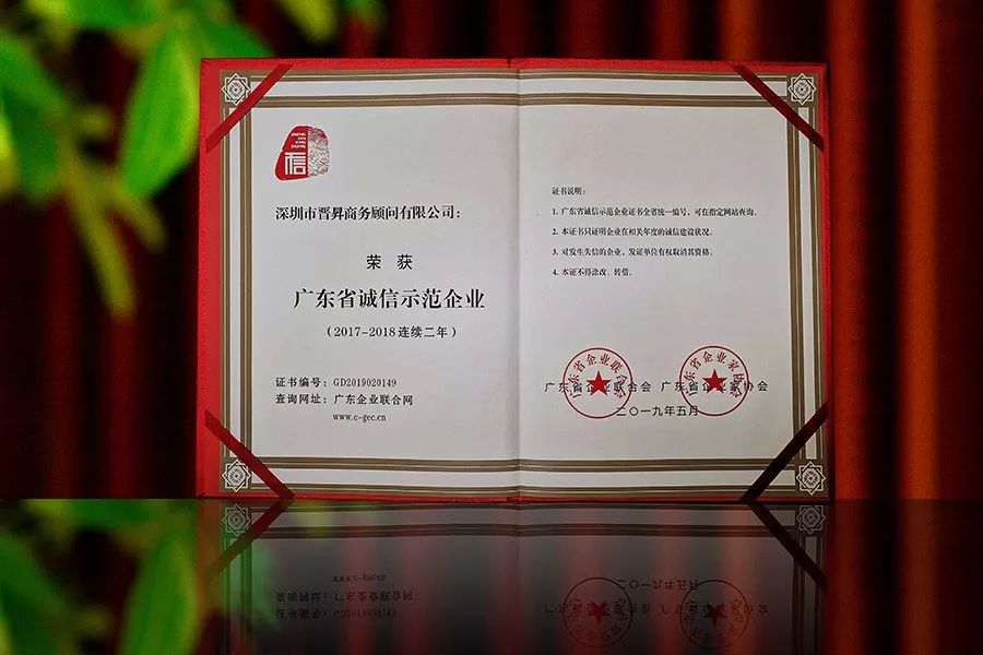 自此榮譽(yù)連續(xù)舉辦至今,廣東省誠信示范企業(yè)評(píng)選對推動(dòng)廣東省經(jīng)濟(jì)領(lǐng)域誠信建設(shè)工作發(fā)揮了積極的作用,具有較高的公信度和廣泛的社會(huì)影響力。此次獲獎(jiǎng)也是對晉昇國際多年來企業(yè)持續(xù)誠信建設(shè)成效的充分認(rèn)可,亦是晉昇國際強(qiáng)大品牌實(shí)力的有力體現(xiàn)。