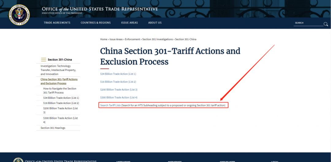 在最后一行“Search Tariff Lists”這里,則可以查詢具體產(chǎn)品是否加稅、何時(shí)開始加稅。