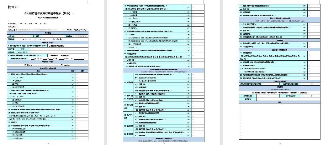 (4)《個(gè)人所得稅年度自行納稅申報(bào)表(B表)》