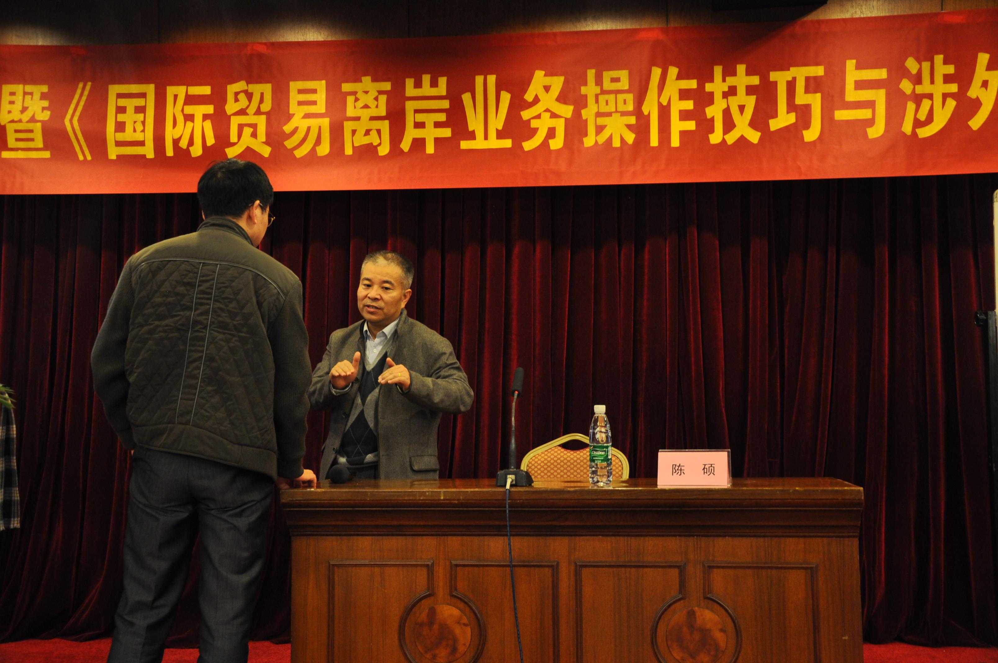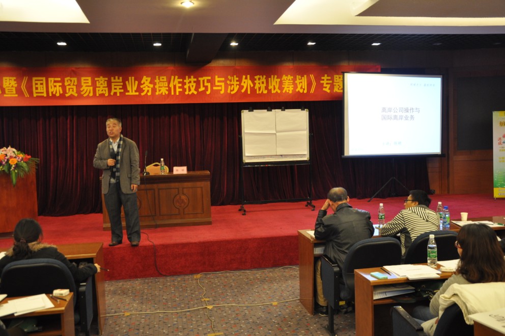 下圖為晉昇商務盛邀的中國香港國際經(jīng)濟管理學院客座教授、省外經(jīng)貿(mào)廳貿(mào)易顧問、中國香港會計師、國內(nèi)稅務師陳碩先生。陳碩先生有著多年離岸管理以及注冊離岸公司操作運營經(jīng)驗,對于國際貿(mào)易離岸業(yè)務操作技巧有著自己獨到的見解,他豐富的離岸操作知識以及清晰快速的語言表達能力令眾多客戶時而冥思苦想,時而又恍然大悟。幽默的語言、清晰的案例、輕快有趣的實際情況讓客戶們深有體會。