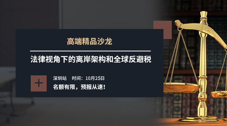 為了讓大家能夠從的法律視角了解全球反避稅趨勢、離岸架構(gòu)搭建新策略、境外稅務(wù)合理籌劃等內(nèi)容,我司整合實力雄厚、知名的律所資源,10月25日,將聯(lián)袂國際財富規(guī)劃聯(lián)盟(IWP)成員、美國瑞銀盡調(diào)推薦律所-Inhetrust重磅推出"法律視角下的離岸架構(gòu)和全球反避稅"精品沙龍。