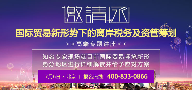 講座預(yù)告 | 北京站《國際貿(mào)易新形勢下的離岸稅務(wù)及資產(chǎn)籌劃》高端專題講座