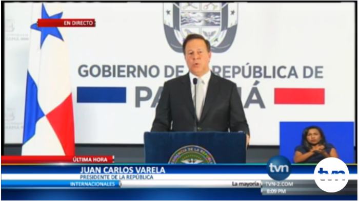 巴拿馬時間6月12日晚8時,巴拿馬總統(tǒng)胡安·卡洛斯·巴雷拉(Juan Carlos Varela Rodriguez),在國家電視臺全國新聞聯(lián)播節(jié)目上,正式向全世界宣布:巴拿馬共和國與中華人民共和國建立外交關系。