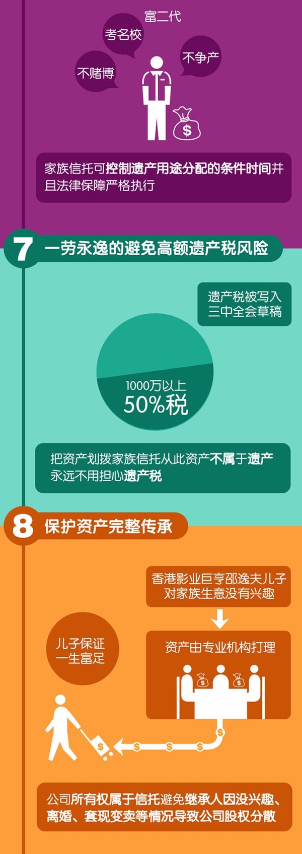 據(jù)調(diào)查統(tǒng)計,85%的企業(yè)主關心和擔心家族財富傳承問題。財富傳承的需求催生了我國家族信托業(yè)務的快速發(fā)展。家族信托在海外作為一種財富傳承和保護的重要工具,已經(jīng)有逾百年的發(fā)展歷史。想要充分看懂家族信托,只需一組圖片!